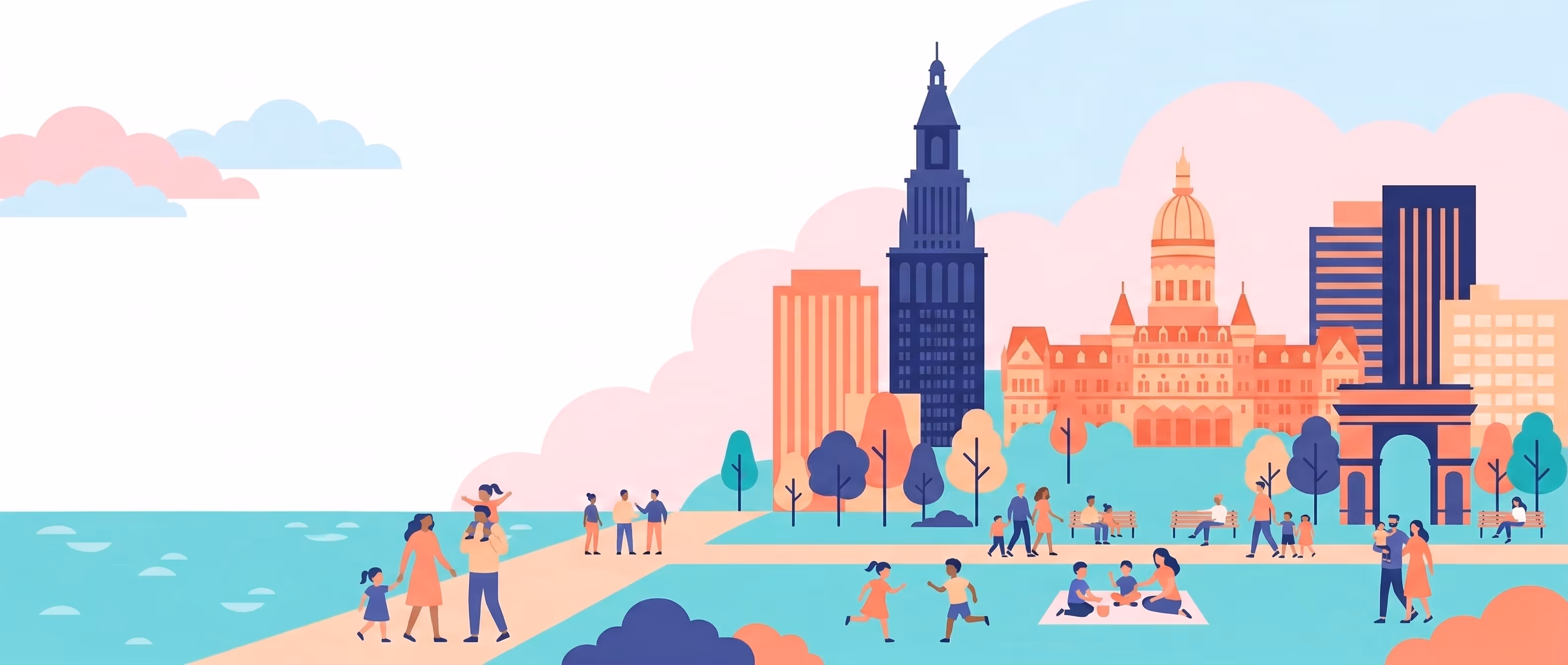 Illustrated cityscape of Austin